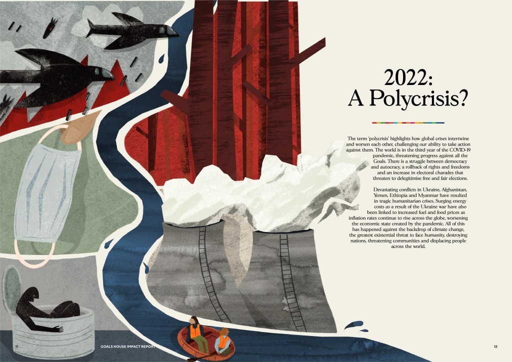 A commercial illustration commission for the Goals House Report, which discussed the UN’s Sustainable Development Goals. I provided several illustrations and textures for the report.