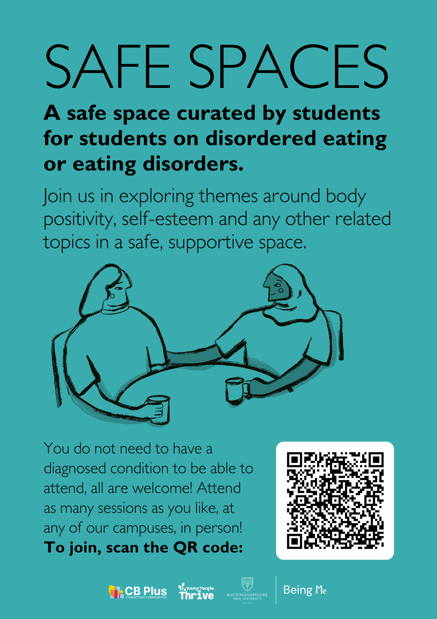 Being Me is a student wellbeing campaign created by Young People Thrive in partnership with Buckinghamshire New University. The campaign was designed to support students who may be experiencing disordered eating or struggling with food-related challenges, offering safe spaces to explore how they’re feeling and practical support around nutrition, cooking, and self-care.