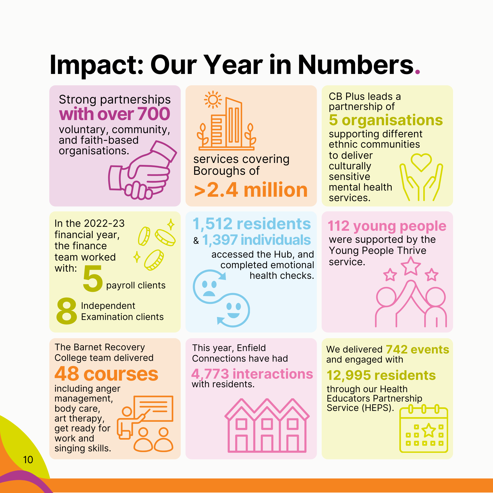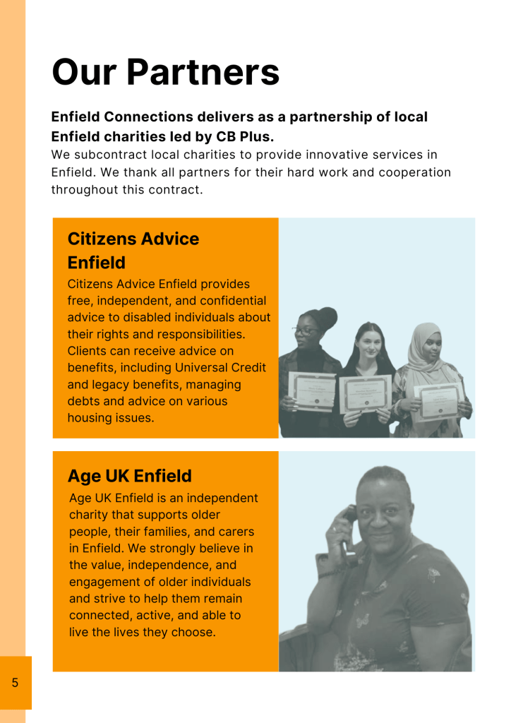 I’ve designed a range of reports for CB Plus, Barnet Wellbeing Service, and Enfield Connections, working across annual reports, service evaluations, and public-facing publications.
