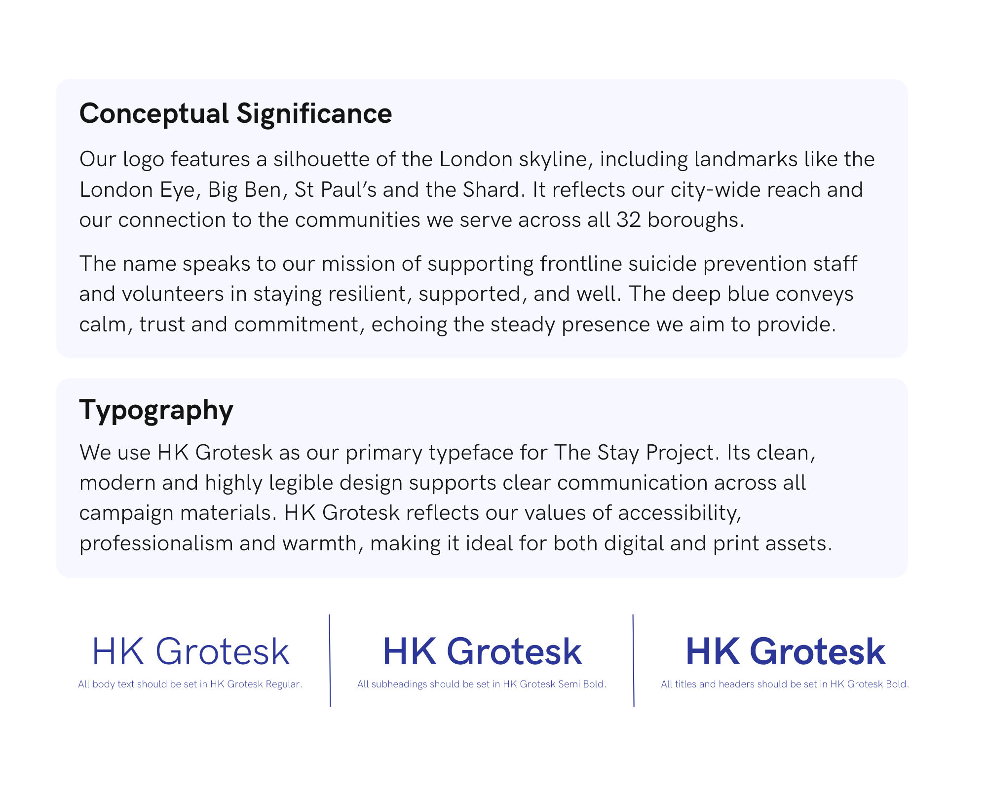 I led on the development of the project’s visual identity, branding, and strategy, working closely with a colleague to shape a tone and look that felt steady, respectful, and warm. The logo, which features a bespoke outline of the London skyline, was created in response to a concept proposed by a partner organisation, but carefully redrawn to avoid any copyright concerns and ensure the final mark was unique and ownable.